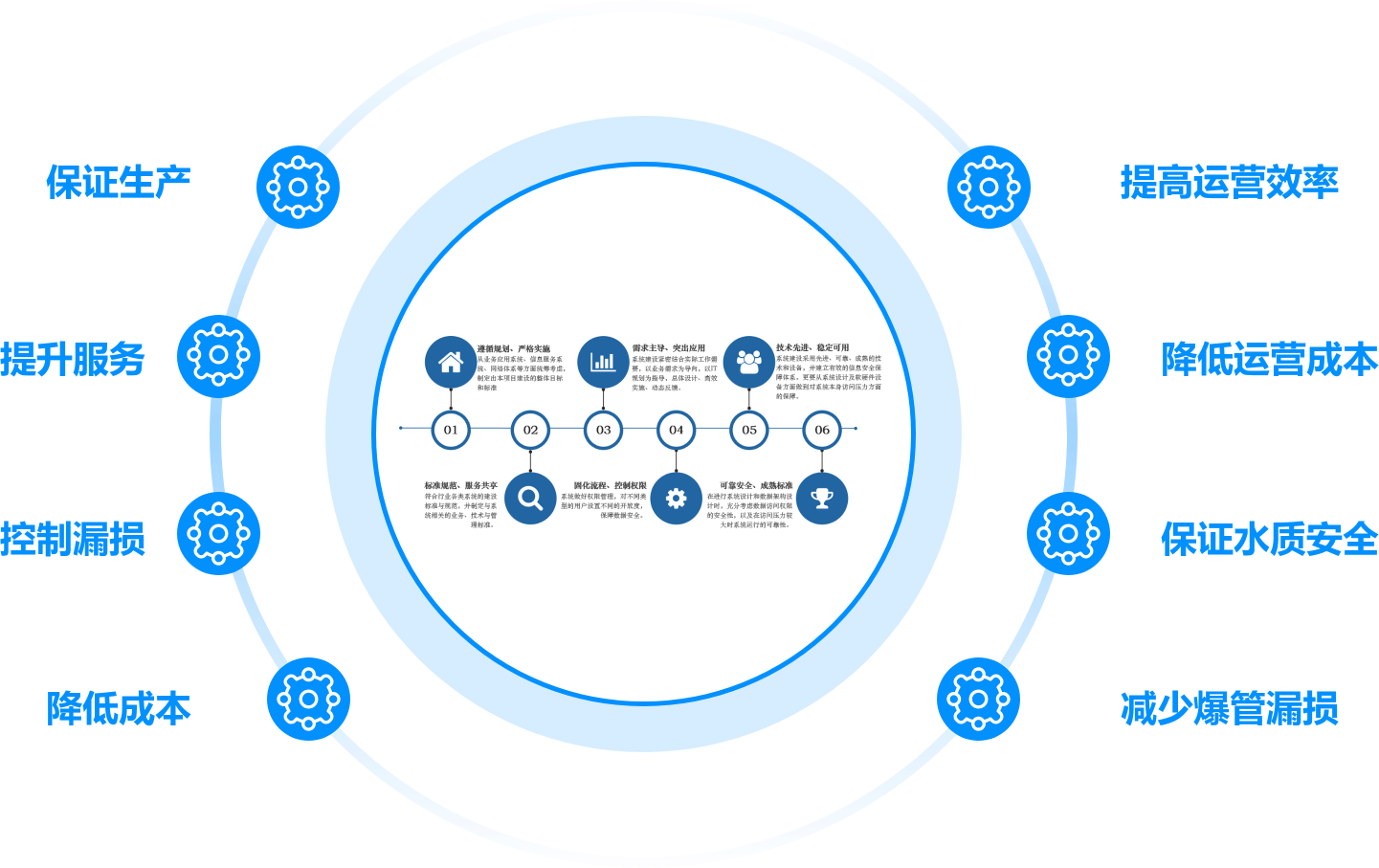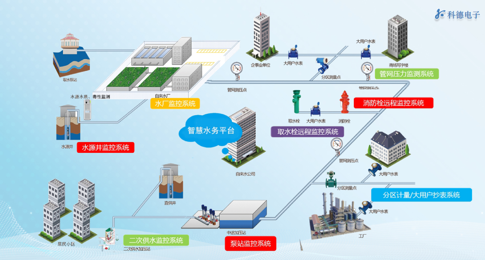 互聯(lián)網(wǎng)+產(chǎn)業(yè)的結(jié)合越來越深入人心,智慧水務也應運而生。智慧水務通過數(shù)采儀、無線網(wǎng)絡、水質(zhì)水壓表等在線監(jiān)測設備實時感知城市供水系統(tǒng)的運行狀態(tài),并采用可視化的方式有機整合水務管理部門與供水設施,形成“城市水務物聯(lián)網(wǎng)”,并可將海量水務信息進行及時分析與處理,并做出相應的處理結(jié)果輔助決策建議,以更加精細和動態(tài)的方式管理水務系統(tǒng)的整個生產(chǎn)、管理和服務流程,從而達到“智慧”的狀態(tài)。為保證供水工作的科學性提供數(shù)據(jù)分析,可及時發(fā)現(xiàn)管網(wǎng)故障,提高維護效率、降低損失,保障輸水、供水質(zhì)量,達到科學預警,減少成本,提高效率的目的。